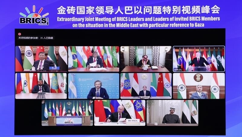 去年11月,金磚國家領(lǐng)導(dǎo)人巴以問題特別視頻峰會召開,與會領(lǐng)導(dǎo)人就應(yīng)對巴以新一輪沖突造成的挑戰(zhàn)并持續(xù)推動巴以問題公正持久解決展開交流,協(xié)調(diào)立場,發(fā)出呼吁,達(dá)成共識,并采取積極行動,發(fā)出清晰的正義之聲、和平之聲。