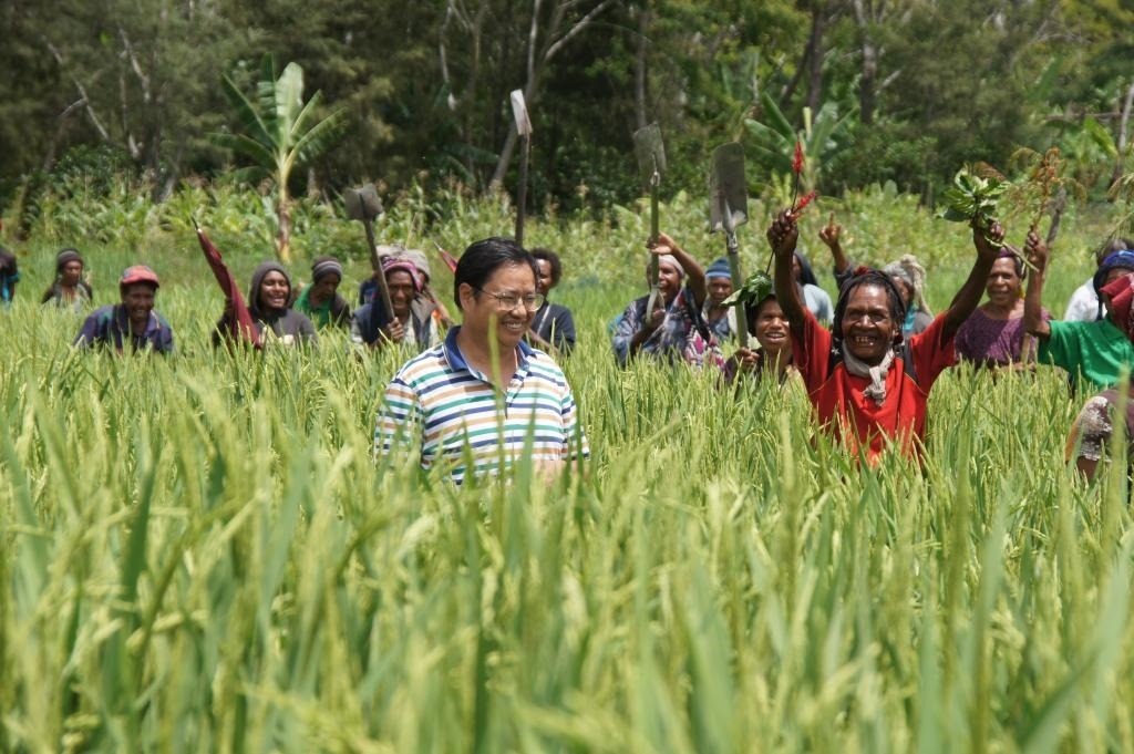 △ 2019年12月17日,首次參與中國(guó)援巴新旱稻項(xiàng)目的巴布亞新幾內(nèi)亞農(nóng)戶,看到自己種植的旱稻長(zhǎng)勢(shì)喜人。