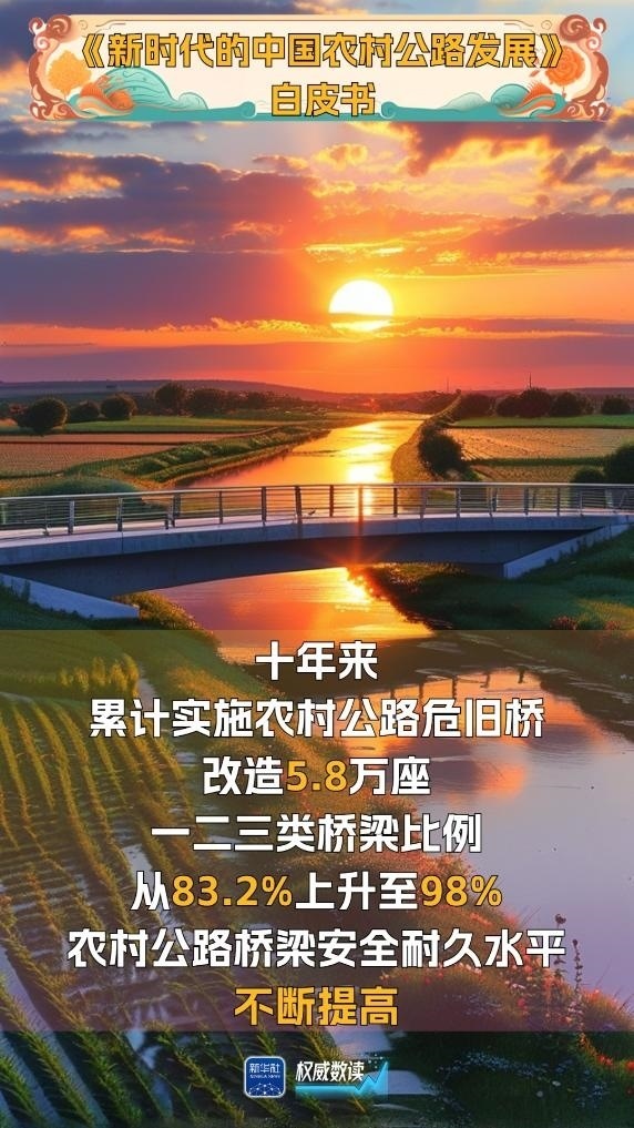 國(guó)務(wù)院新聞辦公室29日發(fā)布的《新時(shí)代的中國(guó)農(nóng)村公路發(fā)展》白皮書(shū)顯示,截至2023年底,我國(guó)農(nóng)村公路總里程增長(zhǎng)到460萬(wàn)公里,占公路總里程的84.6%,目前已形成了“外通內(nèi)聯(lián)、通村暢鄉(xiāng)、客車(chē)到村、安全便捷”的農(nóng)村交通運(yùn)輸網(wǎng)絡(luò),帶動(dòng)農(nóng)村地區(qū)整體面貌發(fā)生了巨大變化。