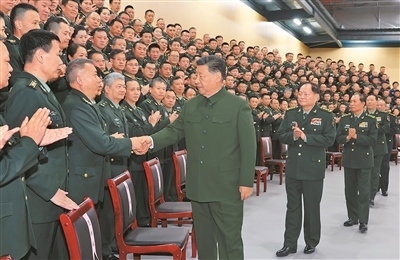十二月四日,中共中央總書(shū)記、國(guó)家主席、中央軍委主席習(xí)近平視察信息支援部隊(duì),代表黨中央和中央軍委,對(duì)信息支援部隊(duì)第一次黨代表大會(huì)的召開(kāi)表示熱烈祝賀,向信息支援部隊(duì)全體官兵致以誠(chéng)摯問(wèn)候。這是習(xí)近平同代表們親切握手。新華社記者 李 剛攝