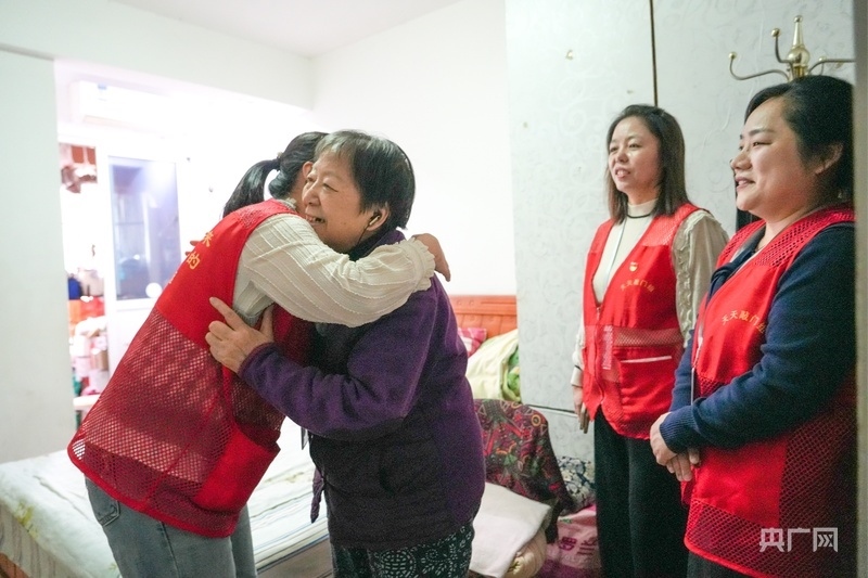 張麗娟熱情地?fù)肀鐓^(qū)工作人員(央廣網(wǎng)見習(xí)記者鄧子依 攝)