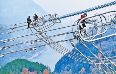 西南深山,電力工人在百米高空“走鋼絲”安裝間隔棒,讓導(dǎo)線保持安全距離;中部平原,機(jī)械設(shè)備在占地約360畝的終端換流站忙碌作業(yè),電纜敷設(shè)量超過1100公里……眼下,近萬名建設(shè)者正齊心協(xié)力,加快建設(shè)金沙江上游至湖北±800千伏特高壓直流輸電工程(以下簡稱“金上至湖北特高壓”)。
