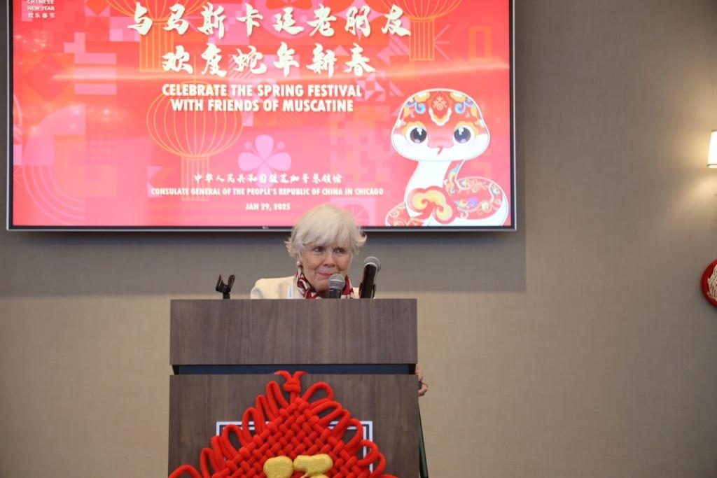 與中國有著多年情誼的艾奧瓦州友人系上了紅圍巾、紅領帶,和年輕人一起感受著蛇年新春的歡樂氛圍?!皩ξ襾碚f,同這么多美中兩國年輕人共慶蛇年,就是最好的慶祝方式。”蘭蒂說。