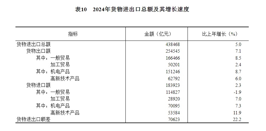 中華人民共和國2024年國民經(jīng)濟(jì)和社會(huì)發(fā)展統(tǒng)計(jì)公報(bào)