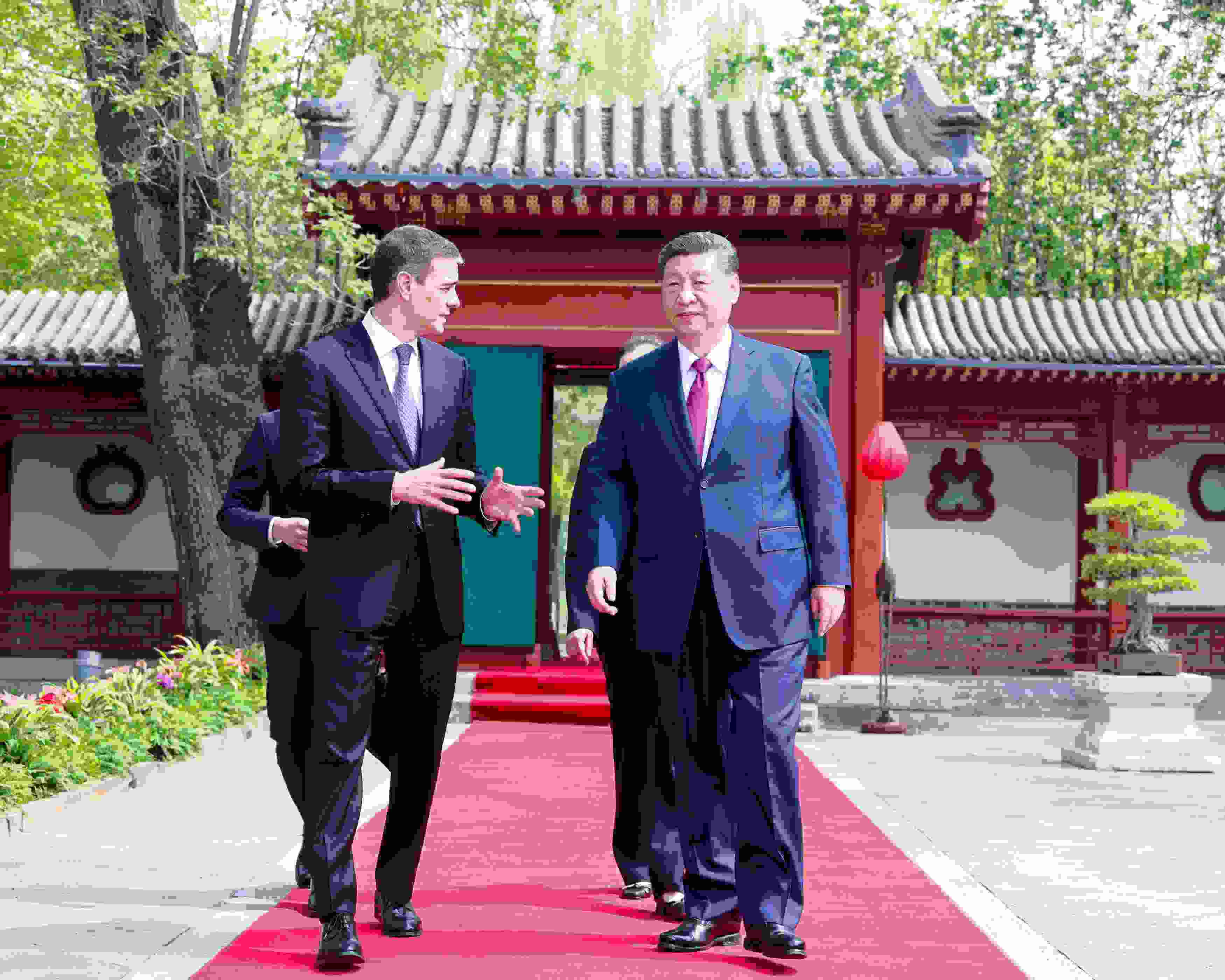 在北京釣魚臺國賓館內(nèi),兩國領(lǐng)導(dǎo)人邊走邊聊,這種輕松的氛圍不僅拉近了兩國距離,更彰顯了中國和西班牙相互信賴、相互尊重、互利共贏的戰(zhàn)略定力和遠(yuǎn)見卓識。
