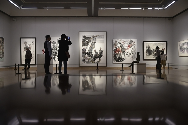 9月27日,觀眾在中國美術(shù)館參觀展出作品。