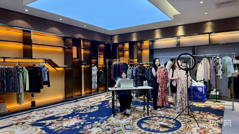 天門服裝電商直播帶貨(央廣網(wǎng)記者趙玲 攝)