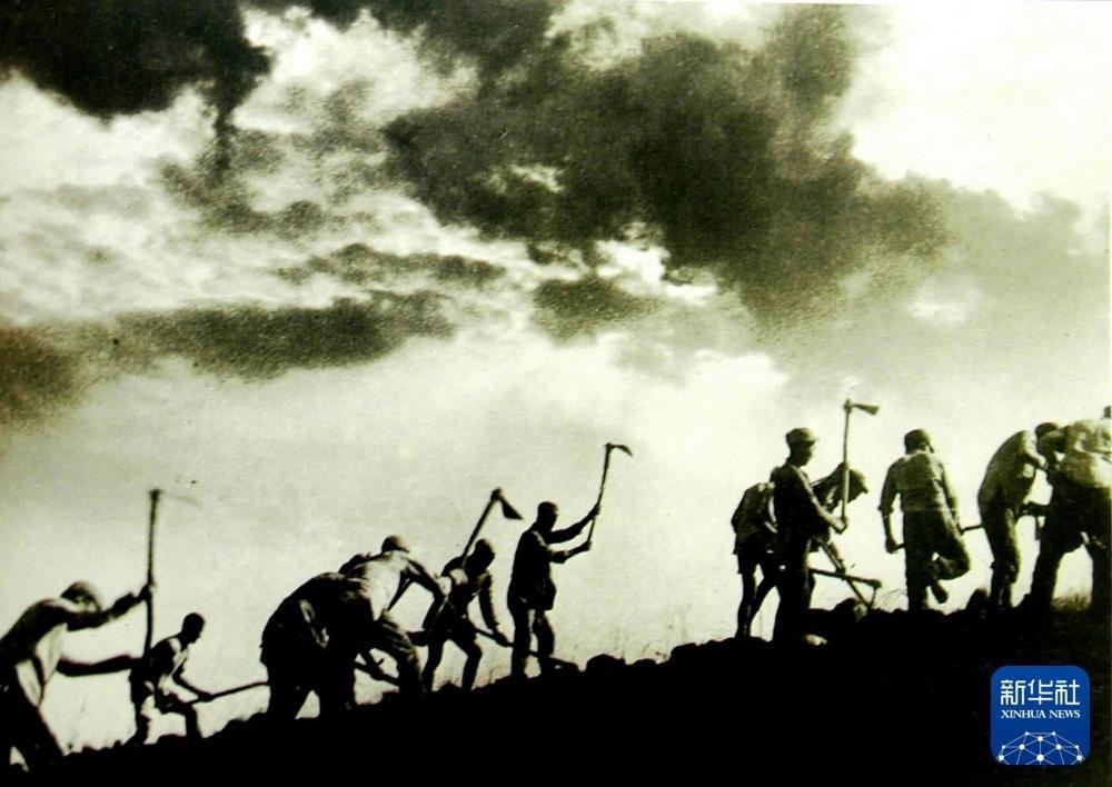 八路軍戰(zhàn)士在南泥灣開(kāi)荒時(shí)的情景。吳印咸 攝