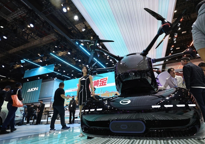 這是在第二十一屆上海國際汽車工業(yè)展覽會上拍攝的廣汽傳祺品牌展出的一款飛行汽車(2025年4月25日攝)。新華社記者 方喆 攝