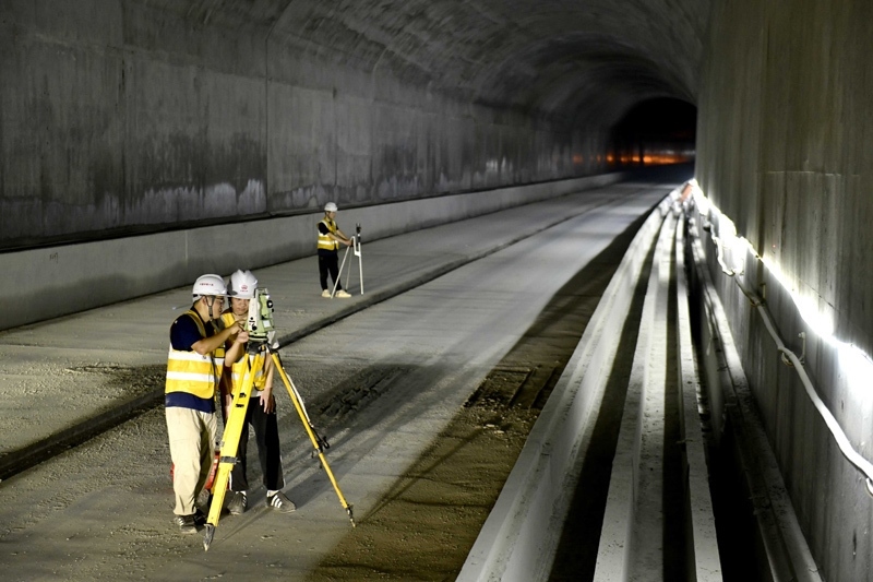 7月30日拍攝的濟(jì)濱高鐵機(jī)場(chǎng)隧道施工現(xiàn)場(chǎng)。