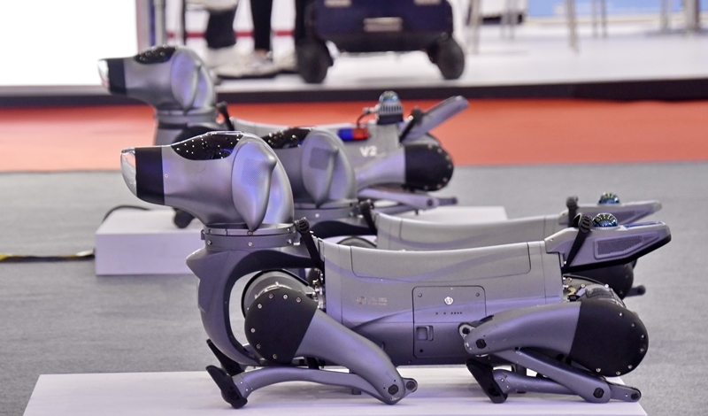 這是8月8日拍攝的2025世界機器人大會上展出的智能機器狗。