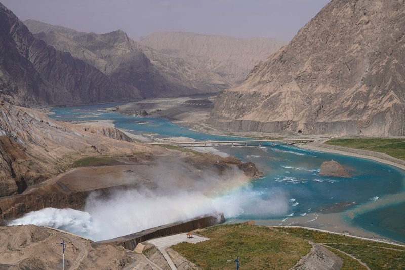 阿爾塔什水利樞紐工程位于新疆維吾爾自治區(qū)喀什地區(qū)莎車縣霍什拉甫鄉(xiāng)和克孜勒蘇柯爾克孜自治州阿克陶縣庫斯拉甫鄉(xiāng)交界處,是葉爾羌河山區(qū)控制性水利樞紐工程,總庫容22.49億立方米,設計年發(fā)電量21.86億千瓦時,是新疆目前規(guī)模最大的水利樞紐工程。該工程兼顧生態(tài)、防洪、灌溉、發(fā)電等功能,2021年8月建成投產(chǎn)以來,平均每年向塔里木河干流生態(tài)補水約3.3億立方米。該工程建成后,徹底解決了葉爾羌河千年水患,每年減少約1000萬人次的防洪投入;同時為南疆提供清潔能源,改善了南疆的電力短缺狀況。