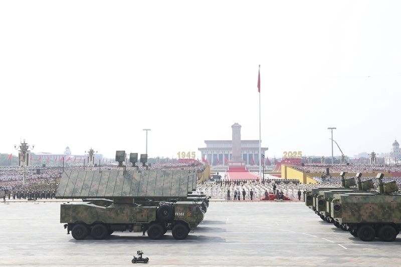 9月3日,紀念中國人民抗日戰(zhàn)爭暨世界反法西斯戰(zhàn)爭勝利80周年大會在北京隆重舉行。這是艦載防空武器方隊接受檢閱。