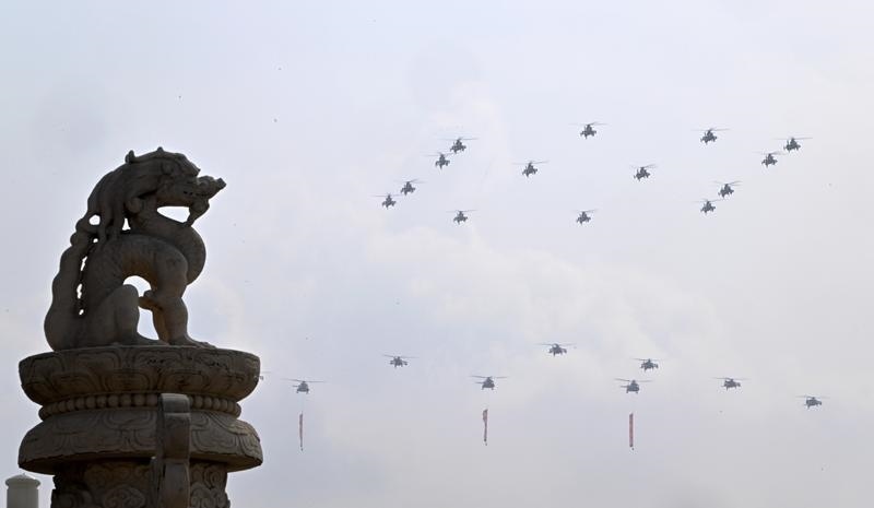 9月3日,紀(jì)念中國人民抗日戰(zhàn)爭暨世界反法西斯戰(zhàn)爭勝利80周年大會在北京隆重舉行。這是教練機(jī)梯隊接受檢閱。