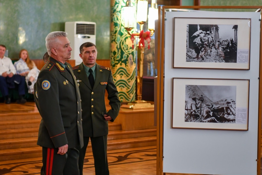 7月24日,在俄羅斯首都莫斯科,嘉賓參觀紀念中國人民抗日戰(zhàn)爭暨世界反法西斯戰(zhàn)爭勝利80周年圖片展。新華社記者 曹陽 攝
