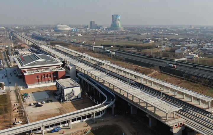 2025年12月26日,從延安開往西安的C9339次列車駛過富平南站(無人機(jī)照片)。新華社記者 李一博 攝