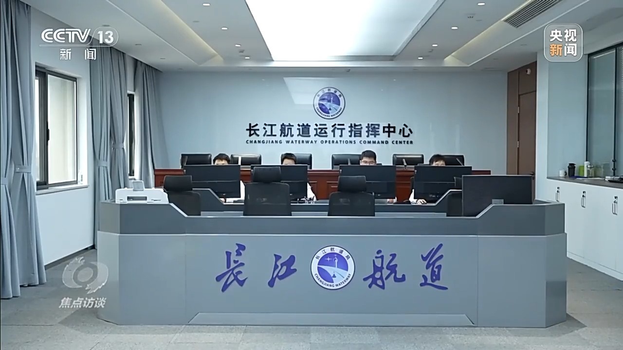 這里有智能化水上交通管控系統(tǒng),面對川流不息的九股船流,記者看到指揮現(xiàn)場忙而不亂,三個屏幕分別顯示實時的智慧海事數(shù)字信號、監(jiān)控視頻、無人機視頻,每一道指令和提醒都發(fā)布得準確及時。