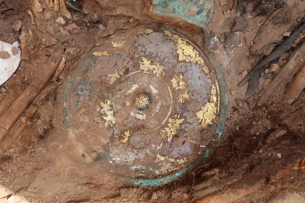 這是吐魯番市巴達(dá)木東晉唐時期墓群出土的金銀平脫花鳥紋銅鏡(資料照片)。新華社 發(fā)
