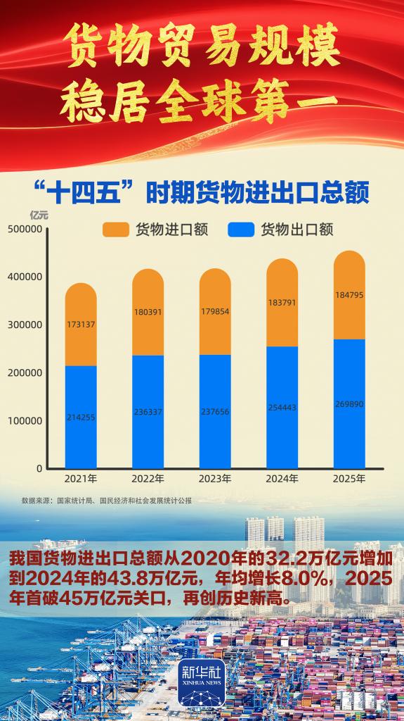“十四五”勝利收官,“十五五”嶄新開局。我國經(jīng)濟(jì)總量完成“四連跳”,躍上140萬億元大關(guān),經(jīng)濟(jì)實(shí)力、科技實(shí)力、綜合國力躍上新臺(tái)階,中國式現(xiàn)代化邁出新的堅(jiān)實(shí)步伐,第二個(gè)百年奮斗目標(biāo)新征程實(shí)現(xiàn)良好開局。2026年全國兩會(huì)召開,舉世矚目。我們梳理出九組數(shù)據(jù),一起感受勝利收官的壯闊歷程、啟新開局的高光時(shí)刻。