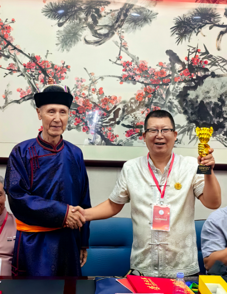 全國名中醫(yī)(名蒙醫(yī))阿古拉教授為董薩那巴特爾頒獎(jiǎng)