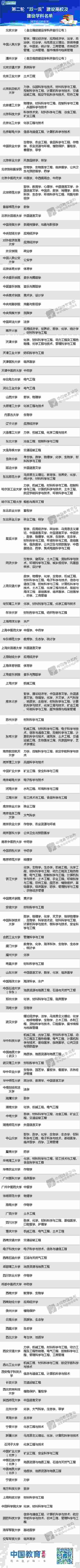 公布第二輪“雙一流”建設(shè)高校及建設(shè)學(xué)科名單的通知
