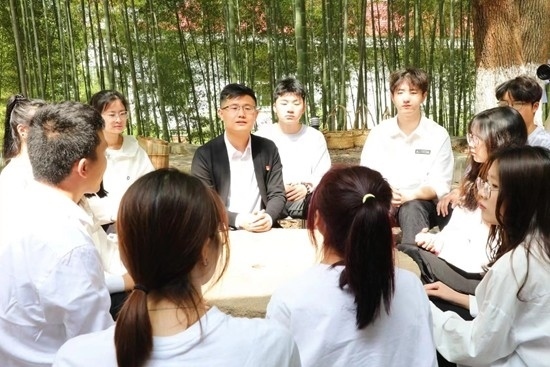 最近,該校馬克思主義學院教師宋曉龍帶著20多名同學沉浸在校內(nèi)的蒼翠竹海中上起了思政課。