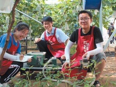 人才培養(yǎng)在遼寧省營口市鲅魚圈區(qū)葡萄科技小院,沈陽農業(yè)大學師生在田間進行指標測定。邢若男攝(人民視覺)