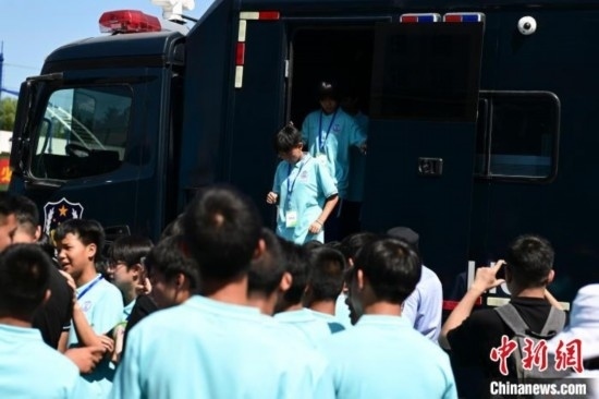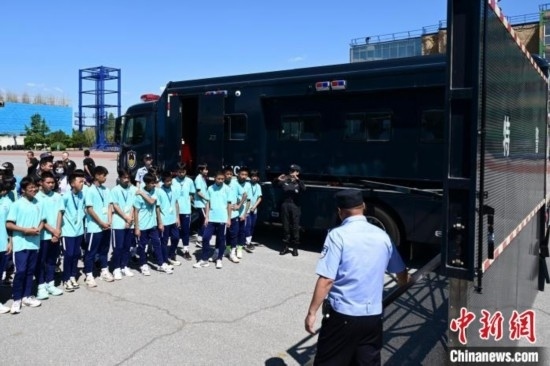 由北京市公安局支教民警組建并執(zhí)教的貴州黔西南州青少年校園足球男、女隊(duì)員共34人來到北京參加夏令營(yíng)活動(dòng)。今天,隊(duì)員們觀看特警訓(xùn)練及警犬演示,現(xiàn)場(chǎng)體驗(yàn)警械武器和警車等裝備使用,感受首都公安風(fēng)采。