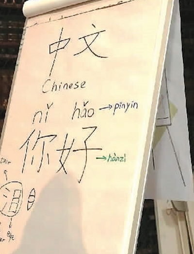 愛爾蘭科克大學孔子學院的國際中文教師為學生們講授漢字的筆記。