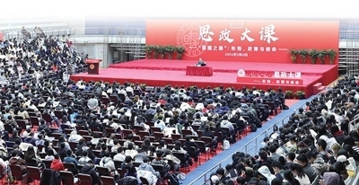 “‘大思政課’我們要善用之,一定要跟現(xiàn)實結合起來。要緊扣‘國之大者’,把道理講深講透講活;用好大師資,讓名師大家走近學生、言傳身教;建好大課堂,將新時代偉大變革及其蘊含的道理學理哲理全面融入教育教學?!睆偷┐髮W黨委書記裘新說。