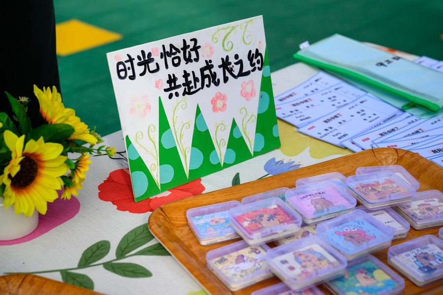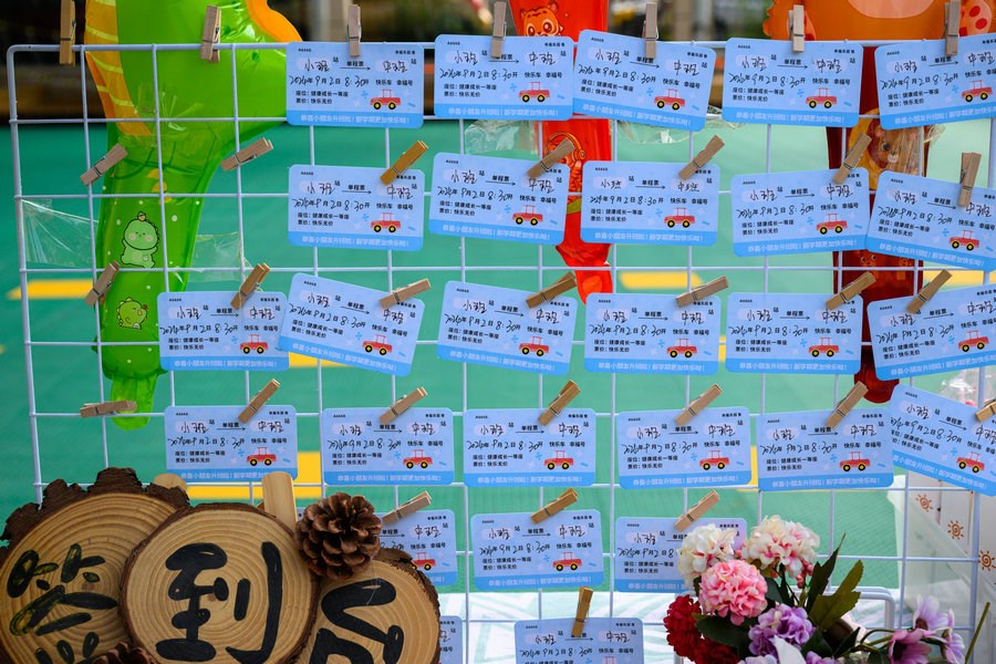 小朋友在家長的陪伴下,興高采烈走進(jìn)校園內(nèi)各個打卡地,打卡蓋章、拍照留念。