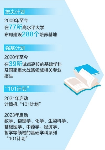 高東鋒:教育部依托高水平大學累計建設288個基礎學科拔尖學生培養(yǎng)基地,強化有組織拔尖創(chuàng)新人才培養(yǎng),在計算機科學、數(shù)學、基礎醫(yī)學、經濟學等9個領域實施“101計劃”,建設核心課程、教材、師資團隊和實踐項目?;A學科拔尖學生培養(yǎng)計劃實施高校建設了一批榮譽學院、書院等“育人試驗區(qū)”,逐漸形成了“選拔設通道、培養(yǎng)留空間、評價長周期、協(xié)同聚合力”的有效模式。