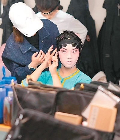 史欣玉對于演出扮相有嚴格的要求,她說:“我想盡可能地將戲曲完美呈現在觀眾眼前,讓大家一看就知道,我們的演出是專業(yè)的,因此妝造、舞臺效果都不能馬虎。我們每個人身兼數職,既要表演,也要學習妝造,互相幫忙完成扮相?!?/p>