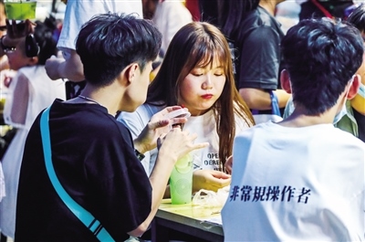 在中山西路,耀眼的霓虹燈點亮了城市最繁華的商業(yè)區(qū),人們摩肩接踵,這里聚集了更多的年輕人,他們一手緊握手機,一手拎著美食,眼睛還不停地尋找更新奇的東西。“沒想到這么多人,感覺比過年的時候人還多。”“我們是在網(wǎng)上看到這里開放夜市,所以約幾個朋友一起過來逛街的,沒想到這么熱鬧。”采訪中,無論是商戶還是市民,都為眼前繁華、熱鬧的場景欣喜。