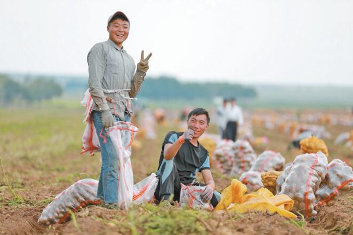近日,在烏蘭察布市察右后旗白音察干鎮(zhèn)建設(shè)村馬鈴薯種植基地,見(jiàn)到該村連營(yíng)農(nóng)業(yè)機(jī)械合作社負(fù)責(zé)人郝軍時(shí),他正忙得不亦樂(lè)乎。據(jù)了解,今年馬鈴薯銷售價(jià)格可觀,他們的合作社迎來(lái)了又一個(gè)豐收年。