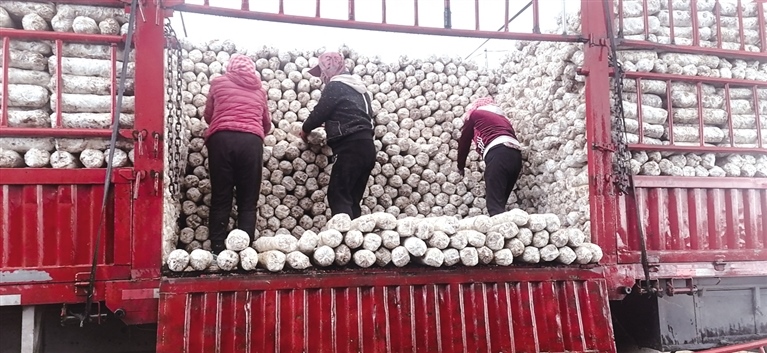 花菇菌棒進棚上架