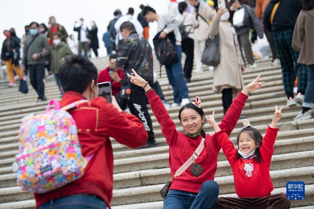 游客在澳門(mén)大三巴牌坊前參觀(guān)合影(1月26日攝)。新華社記者 張金加 攝
