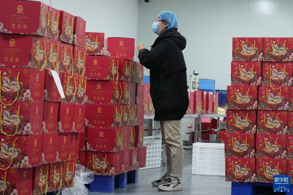 2月17日,威海長林生態(tài)農(nóng)業(yè)有限公司員工清點即將發(fā)運的花餑餑產(chǎn)品。新華社記者 朱崢 攝