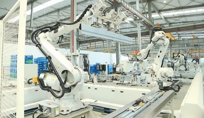 浙江省杭州市臨平區(qū)經(jīng)開區(qū)一座“黑燈工廠”,智能機(jī)械臂正忙著工作。竇瀚洋 王 玨 攝影報(bào)道
