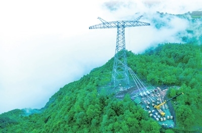 國家電網(wǎng)白鶴灘至浙江±800千伏特高壓輸電工程四川段放線現(xiàn)場。 盧忠東攝
