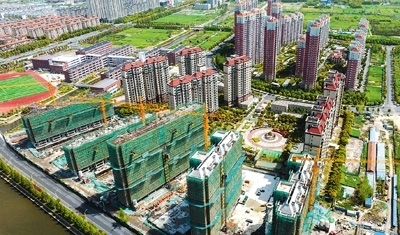 近年來,江蘇省海安市不斷提升保障性住房建設品質,改善居民住房條件,讓更多群眾早日實現(xiàn)安居夢。圖為近日,海安高新區(qū)城南花苑5期保障性住房項目正在加緊施工。翟慧勇攝(人民視覺)