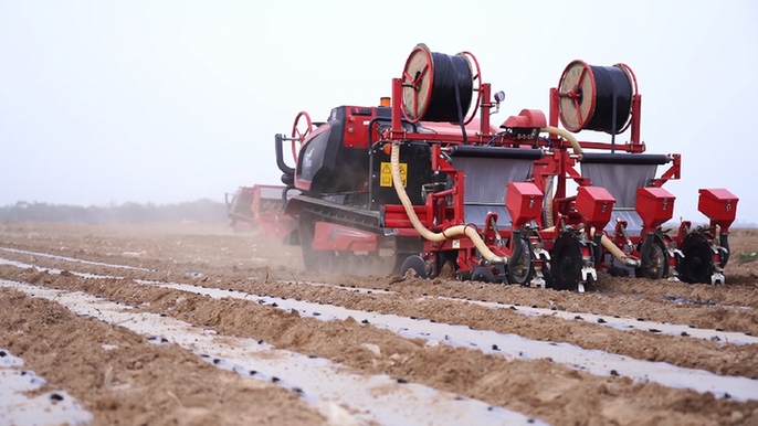 近日,在山東省德州市武城縣中椒英潮辣業(yè)發(fā)展有限公司辣椒種植示范基地,一臺無人駕駛的辣椒直播機(jī)來回穿梭,不僅將辣椒種子播種下去,同時(shí)一體化實(shí)現(xiàn)了地膜覆蓋,這也是德州市首次實(shí)現(xiàn)辣椒機(jī)械直播。