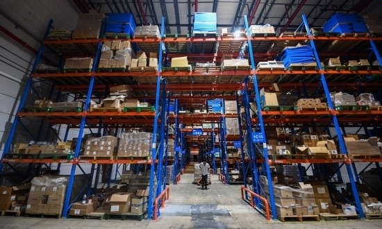 2022年9月2日,在杭州綜合保稅區(qū)一家跨境保稅倉(cāng)內(nèi),工作人員在搬運(yùn)跨境電商保稅進(jìn)口商品。新華社記者 徐昱 攝