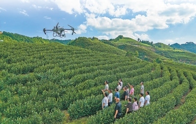 重慶市南川區(qū)在興隆鎮(zhèn)金花村白茶基地開展高素質(zhì)農(nóng)民植保無人機飛手培訓。羅 川攝(人民視覺)
