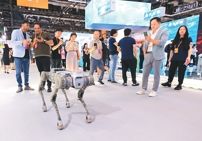 觀眾在2024年中國國際服務(wù)貿(mào)易交易會上觀看四足機(jī)器狗表演。以上圖片均由陳曉根攝(人民視覺)