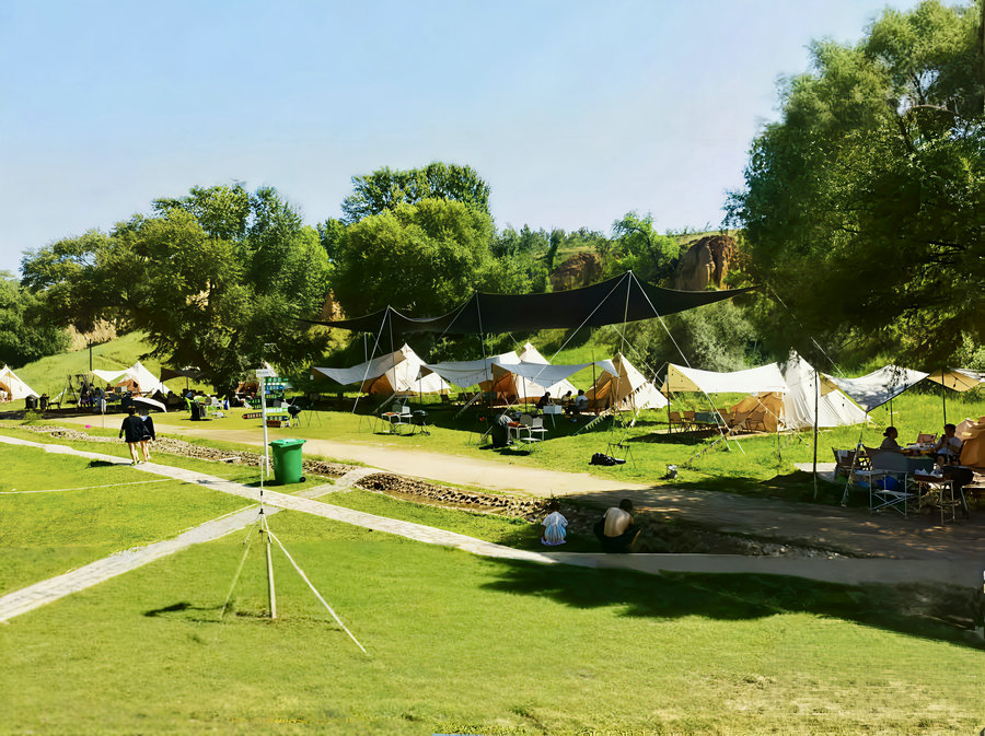2022年,柳條溝村人裴示雨帶著資金與想法回到家鄉(xiāng),將目光投向了村里那條荒廢多年的山溝。他先付30萬元承包費,再砸下180萬元改造,300畝荒坡上崛起了自由野輕奢露營基地。如今,這里集露營、燒烤、氧吧體驗于一體,成了城里人周末“躲清閑”的首選地。