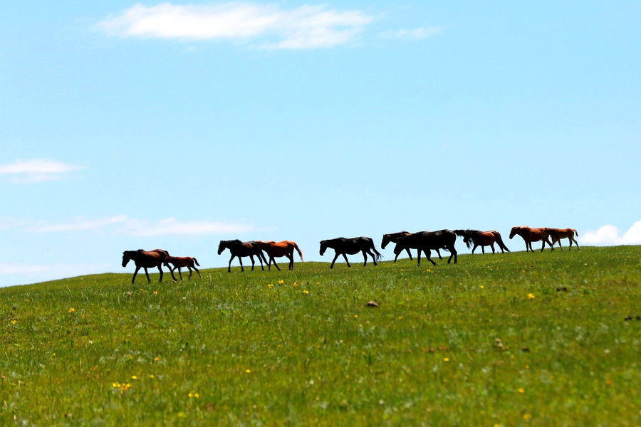 穿行在輝騰錫勒草原著名的黃花溝草原旅游區(qū),藍(lán)天白云、綠草如茵,鮮花朵朵、氈包座座,成群牛羊、牧歌回蕩……一幅優(yōu)美的草原風(fēng)情畫(huà)盡收眼底。