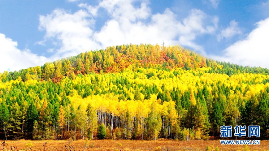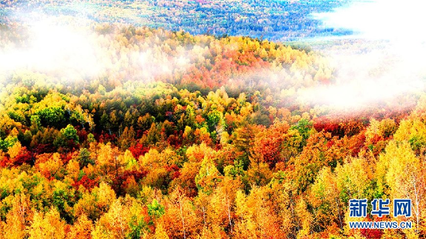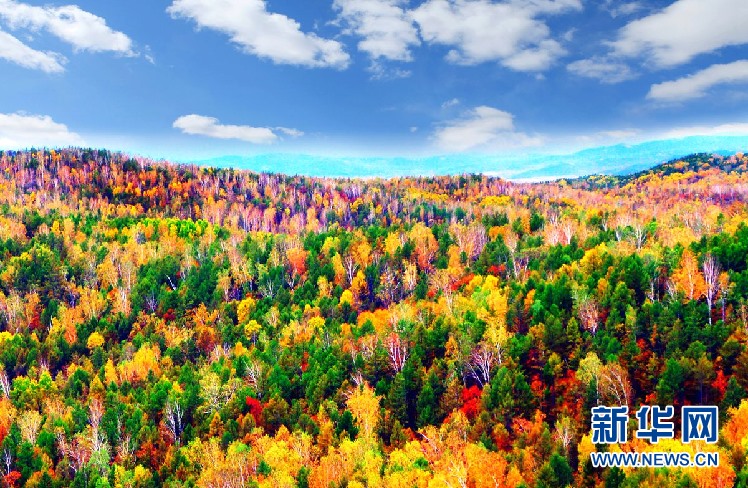 松樹(shù)林、白樺林、柞樹(shù)林和一片片混交林“染”成不同色彩,茫茫林海宛若一幅匠心獨(dú)運(yùn)的繽紛畫卷。(9月28日攝)新華網(wǎng)發(fā)(欒維敬 攝)