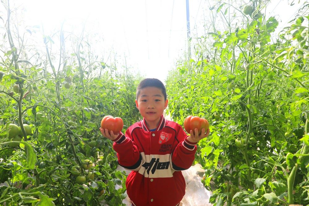 游客在阿勒坦設(shè)施農(nóng)業(yè)基地采摘西紅柿  記者 張楊攝影