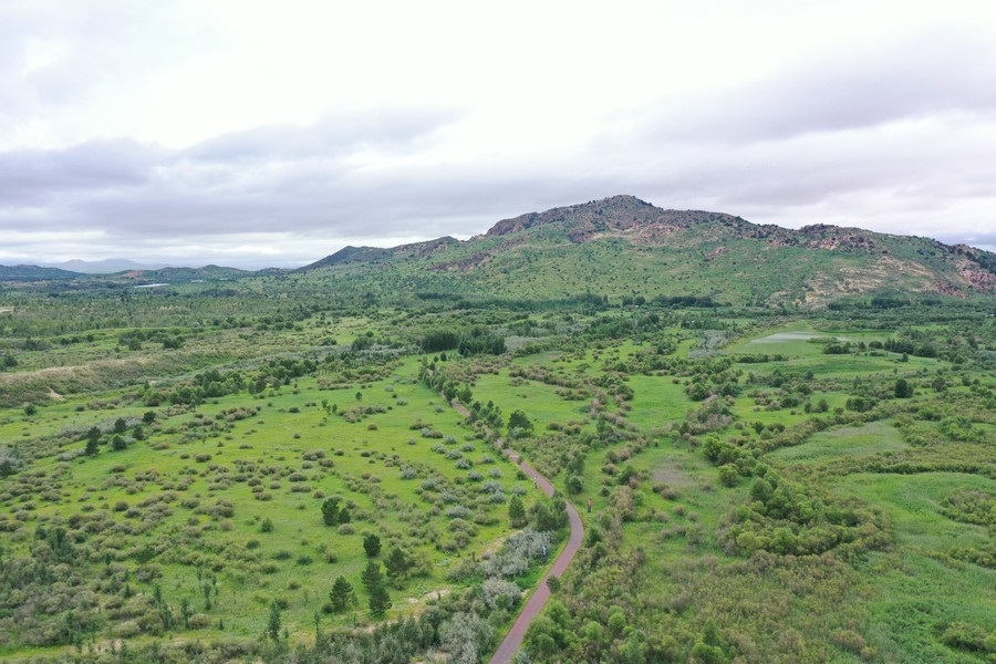 空中俯瞰s沙湖濕地